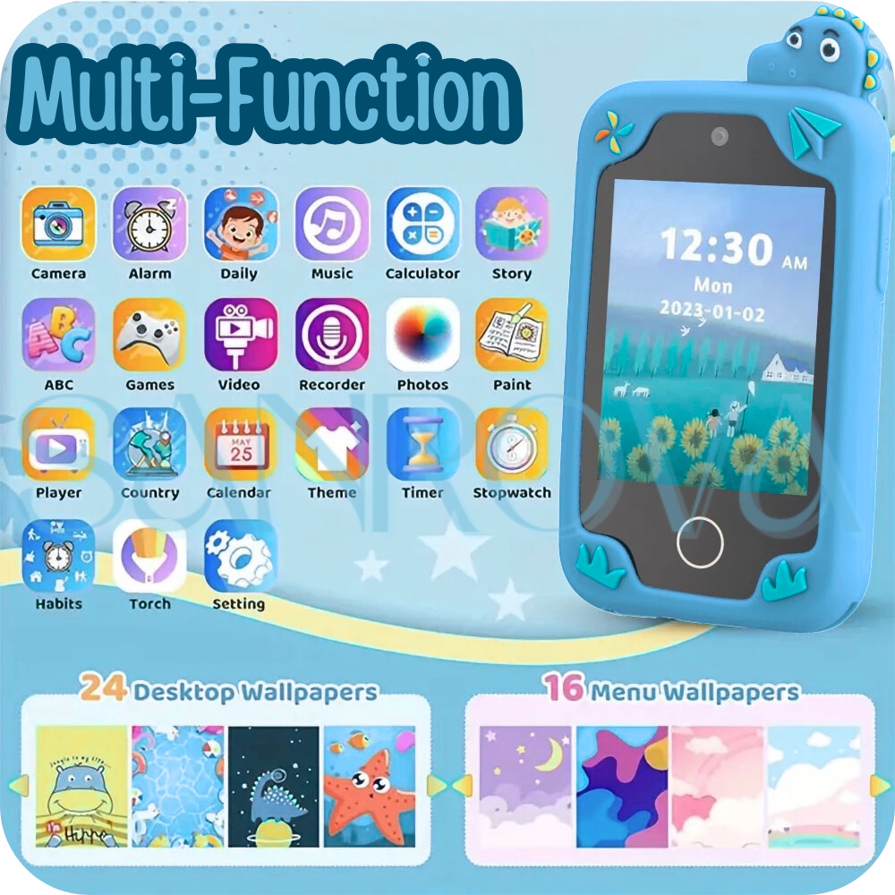 Give your child a world of creativity, learning, and fun—all in one safe, kid-friendly device. Packed with 20+ apps like Camera, Music, Games, Stories, Paint, Timer, and ABC Learning, this SmartKid Phone keeps little hands engaged and little minds growing.